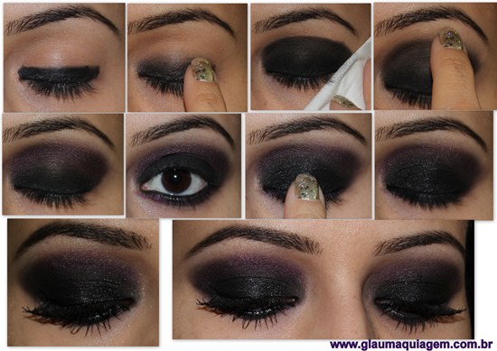 Se for utilizar a sombra preta para esfumaçar, quando fizer o traço na raiz dos cílios utilize um pincel úmido para o pigmento da cor fixar melhor, e a cor ficar mais forte, e esfume com um pincel macio ou cotonete.